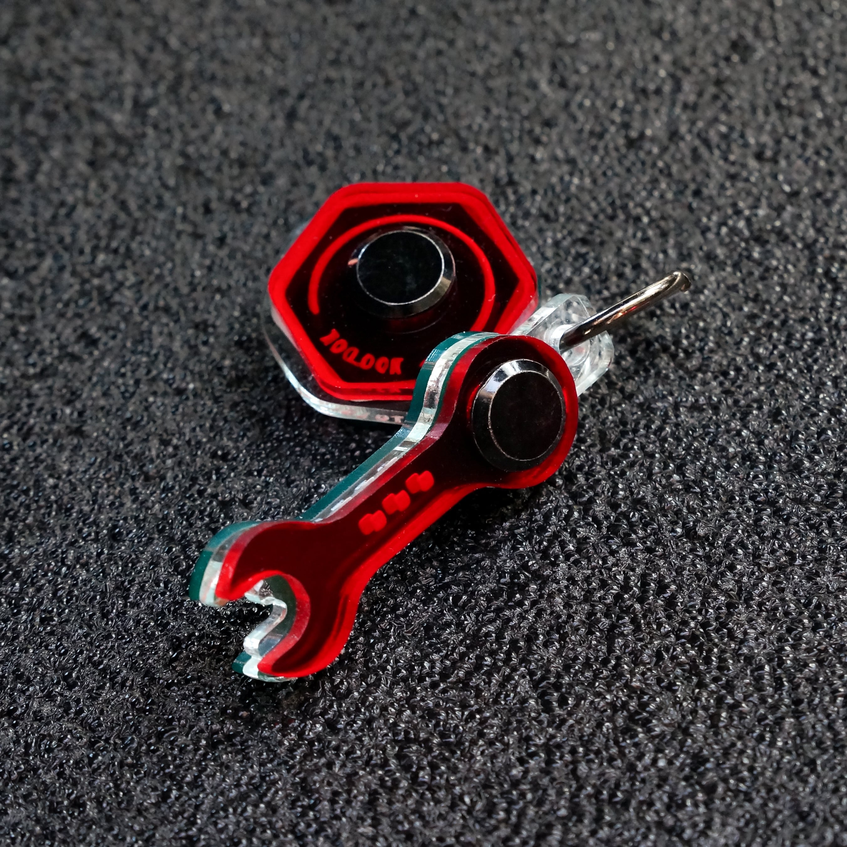スパナとナットの2個セット。スパナはシカゴスクリューを軸にスイングさせることが可能。本物の工具を扱っているかのような楽しさを加えた、シリーズで最もメカニカルなセットです。